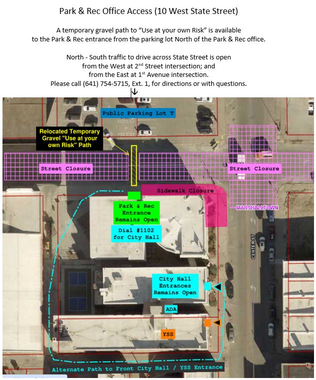 Please contact Park & Rec with questions or to schedule early entry - precoffice@marshalltown-ia.gov.